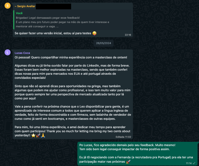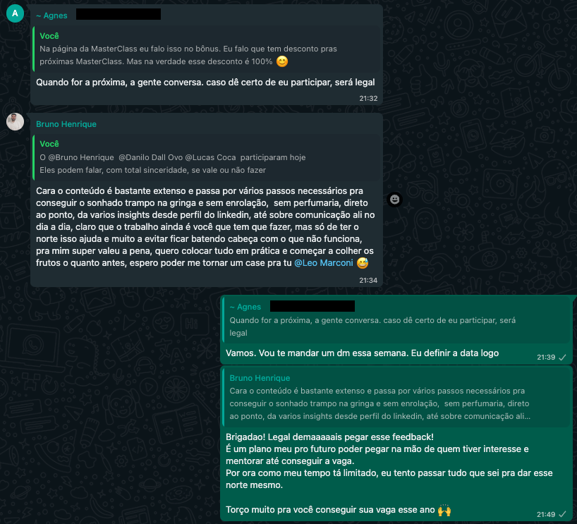 Você será adicionado a um grupo de WhatsApp em seu número de celular cadastrado. Neste grupo eu enviarei os links da MasterClass